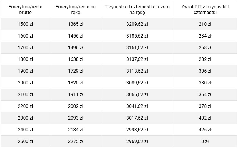 Jaki zwrot PIT z 13. i 14. emerytury otrzymają seniorzy w 2026 roku? [Tabela]